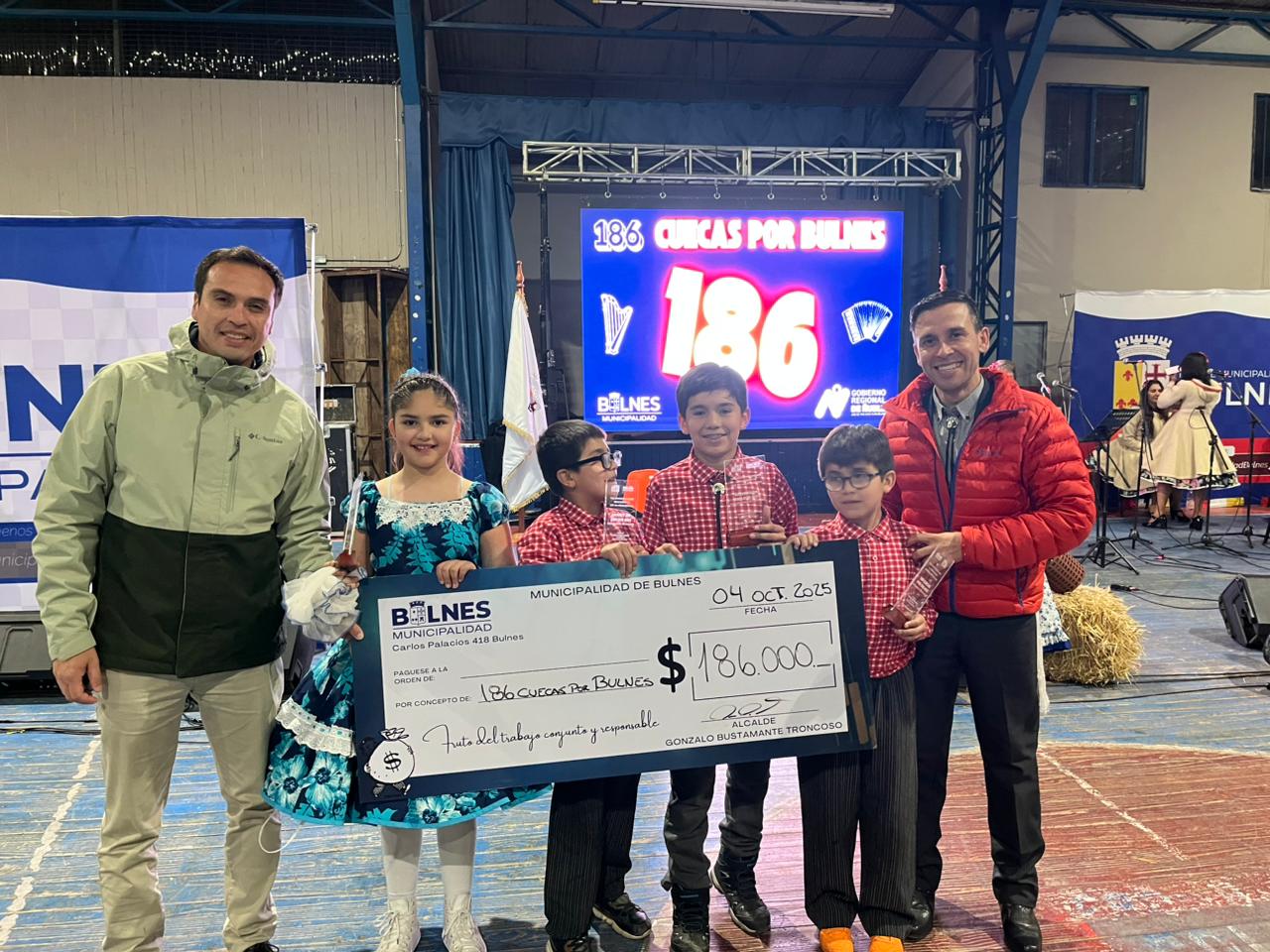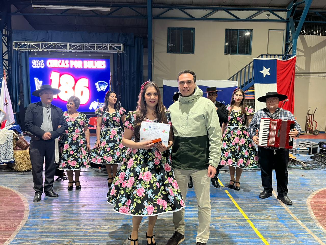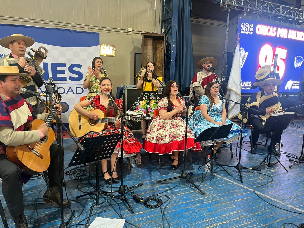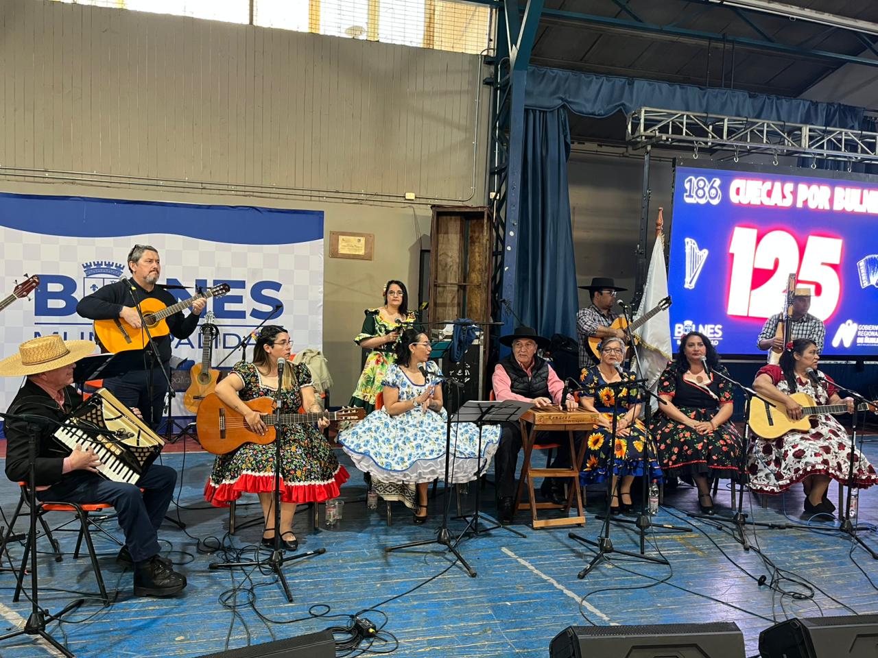La iniciativa del alcalde Gonzalo Bustamante, cont贸 con el apoyo de 12 conjuntos folcl贸rica de la comuna y regi贸n, m谩s un centenar de bailarines que intentaron bailar las 186 cuecas.馃拑馃徎