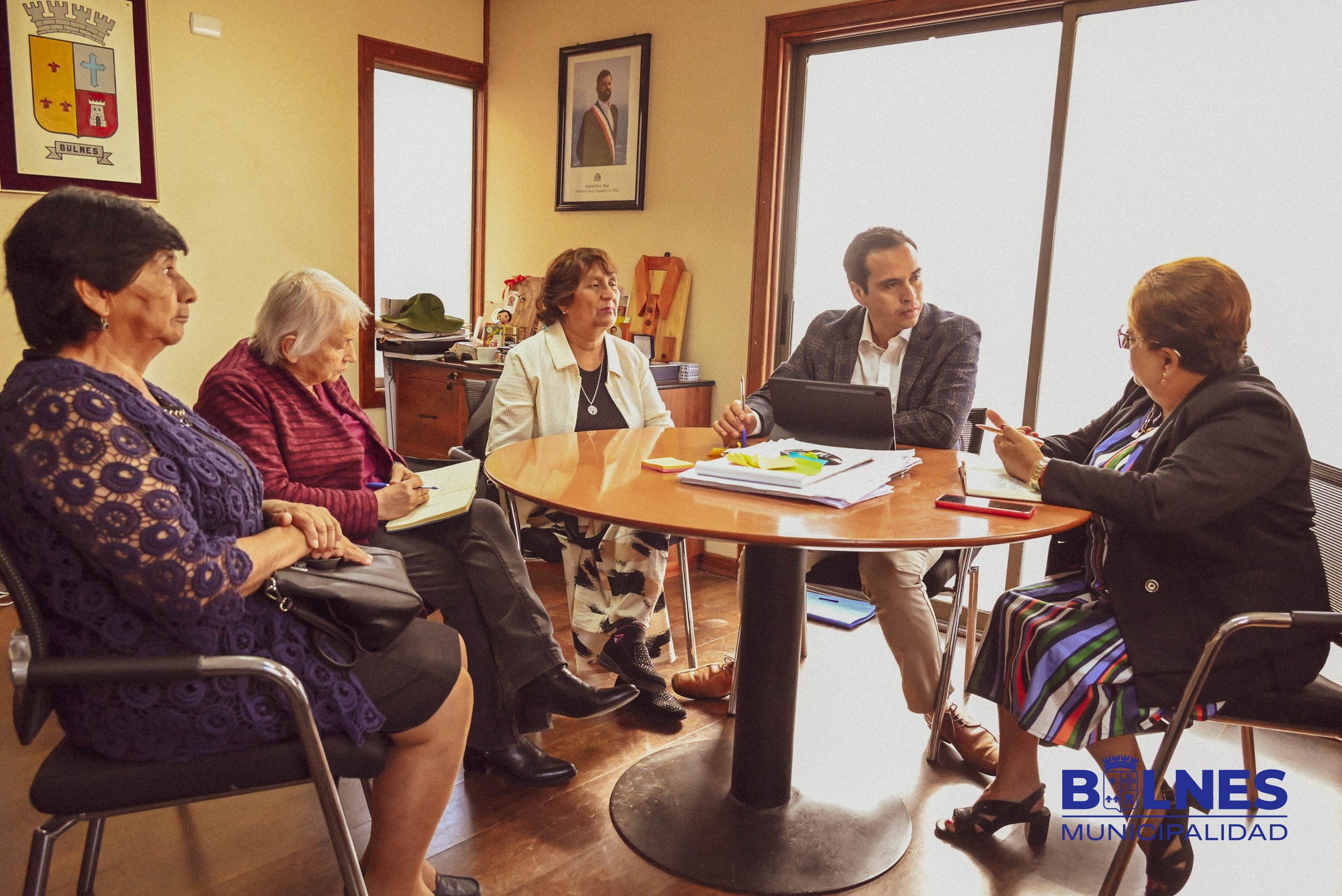El alcalde de la comuna de Bulnes, Gonzalo Bustamante, junto al director de DIDECO, Fahd Hidd, y la encargada de la Oficina Comunal del Adulto Mayor Catalina Yañez, sostuvieron una importante reunión en la alcaldía con la directiva de la Unión Comunal de Adultos Mayores de la comuna.